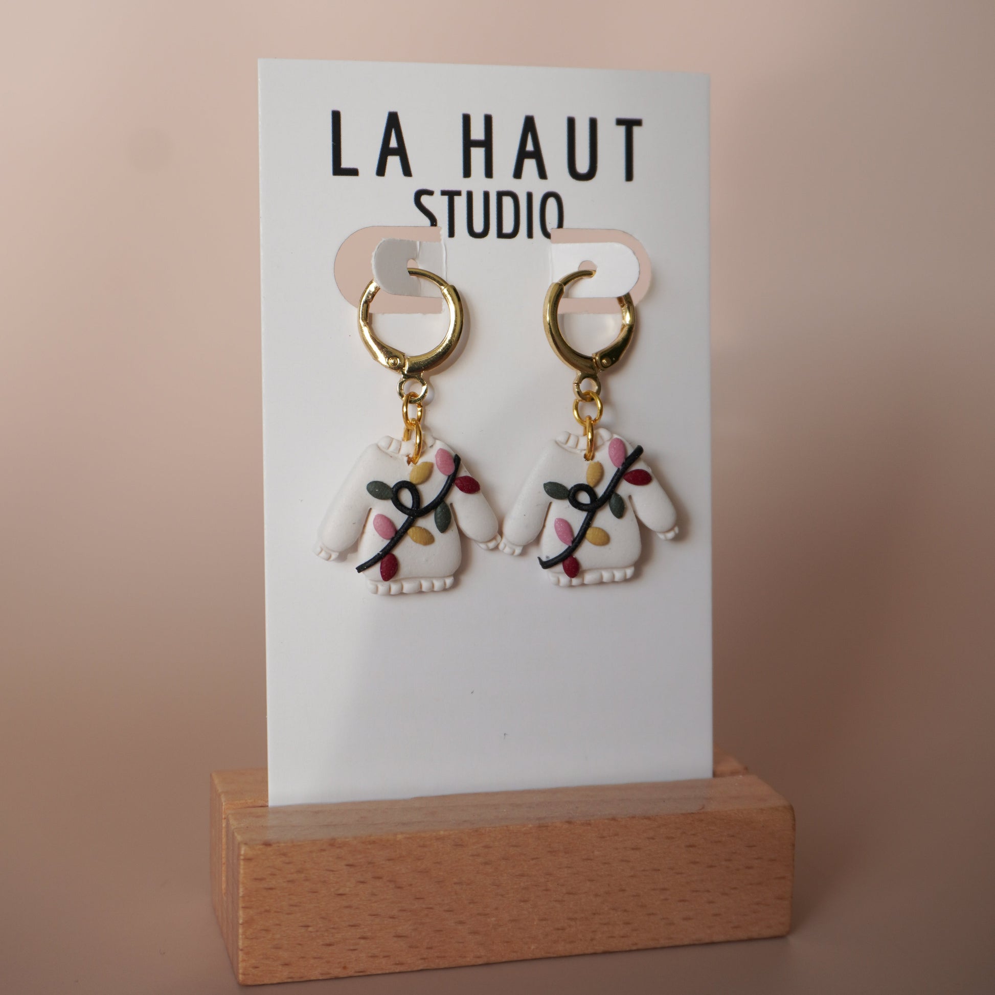 Lightweight, handmade polymer clay earrings with gold-plated, nickel-free metals. Each pair is unique and may vary slightly due to their handmade nature.