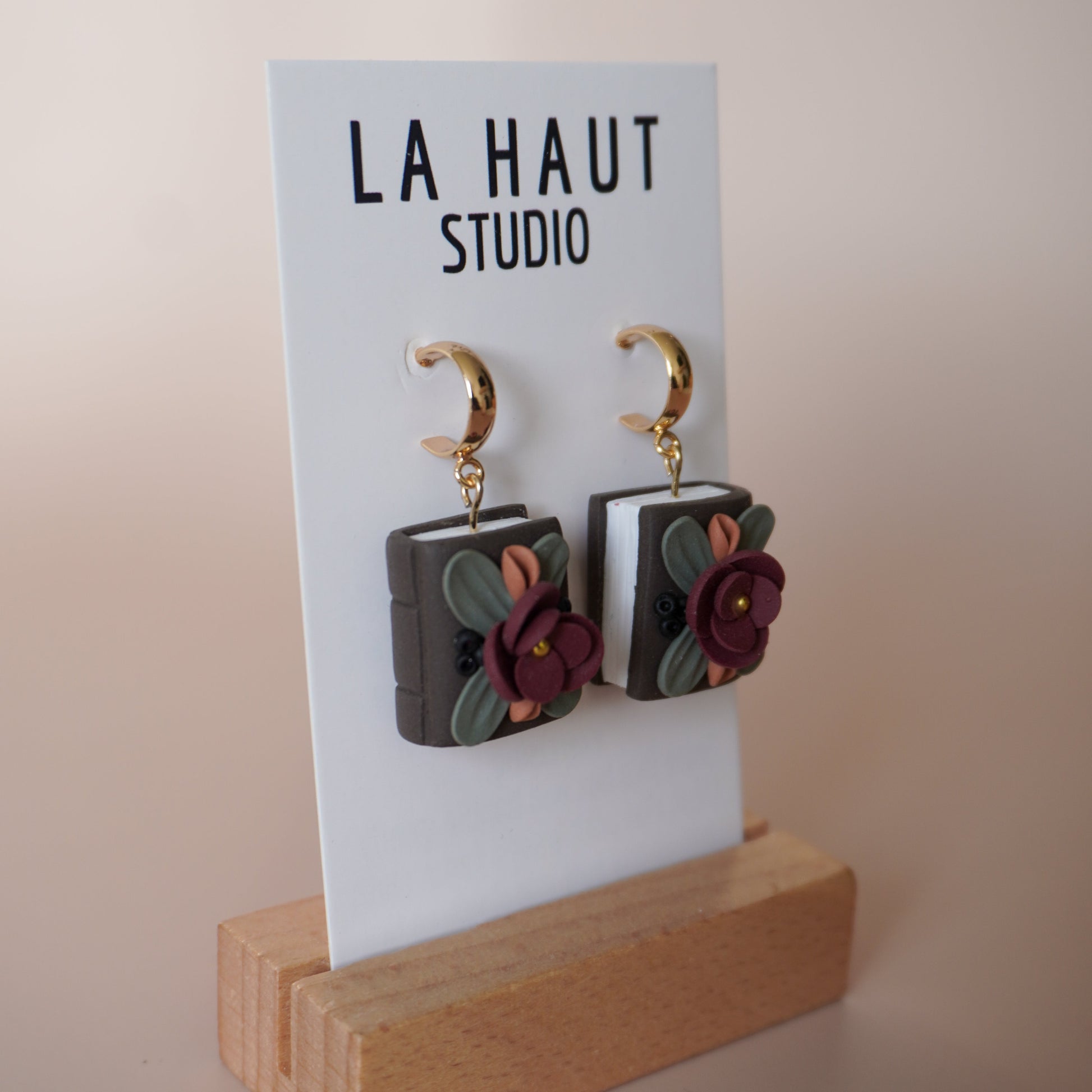 Lightweight, handmade polymer clay earrings with gold-plated, nickel-free metals. Each pair is unique and may vary slightly due to their handmade nature.