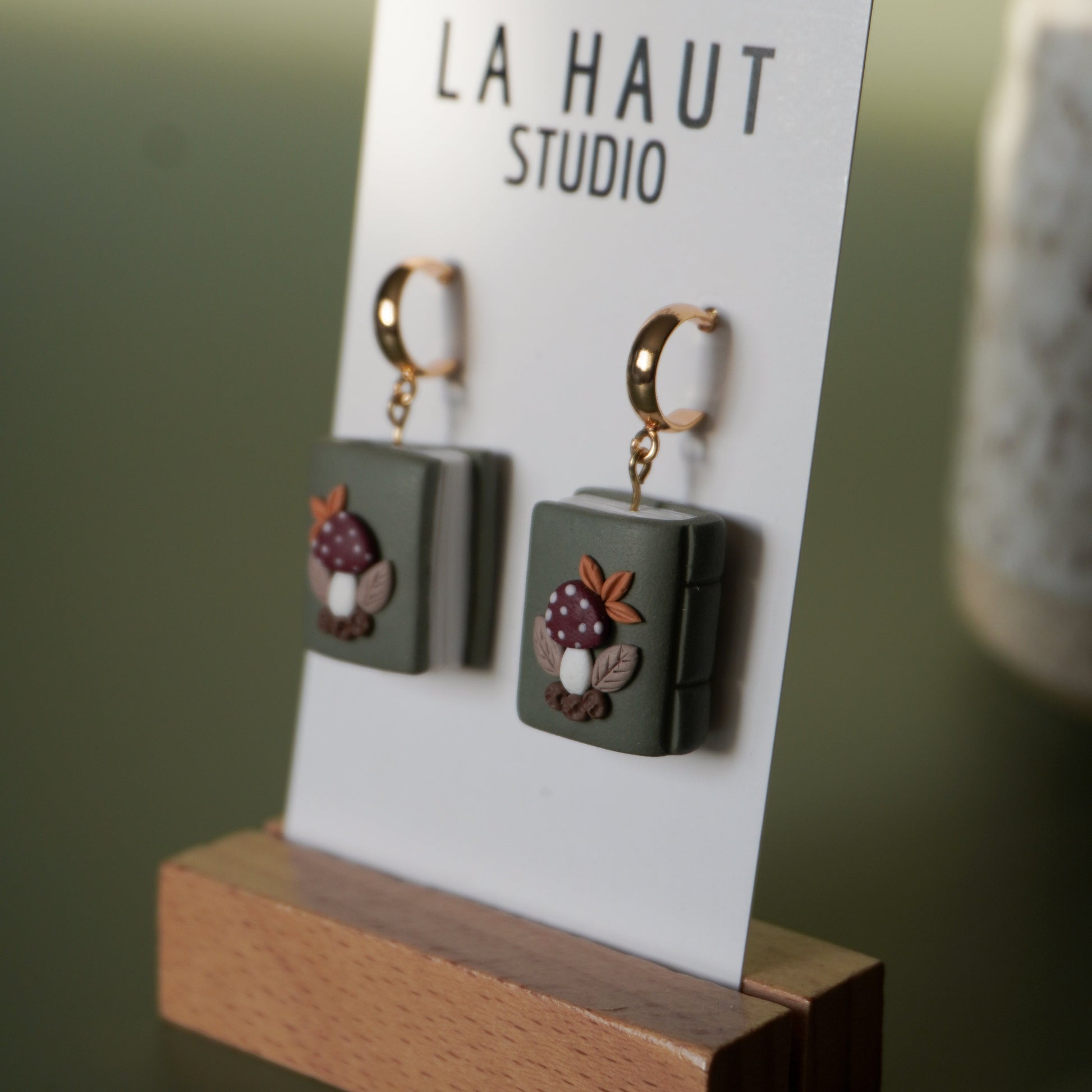 Lightweight, handmade polymer clay earrings with gold-plated, nickel-free metals. Each pair is unique and may vary slightly due to their handmade nature.